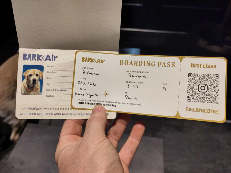 We are finally in France! And enjoying life in the rural southwest near Toulouse (you can actually see stars). We came down in a seven hour drive after recovering a few days at a Paris airport hotel. Whereas Laura flew commercially, Athena and I came in via an overnight charter flight with 8 or so other dogs and humans.