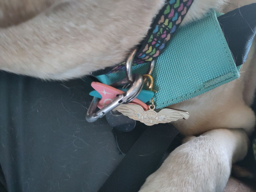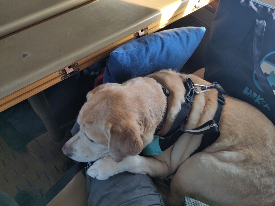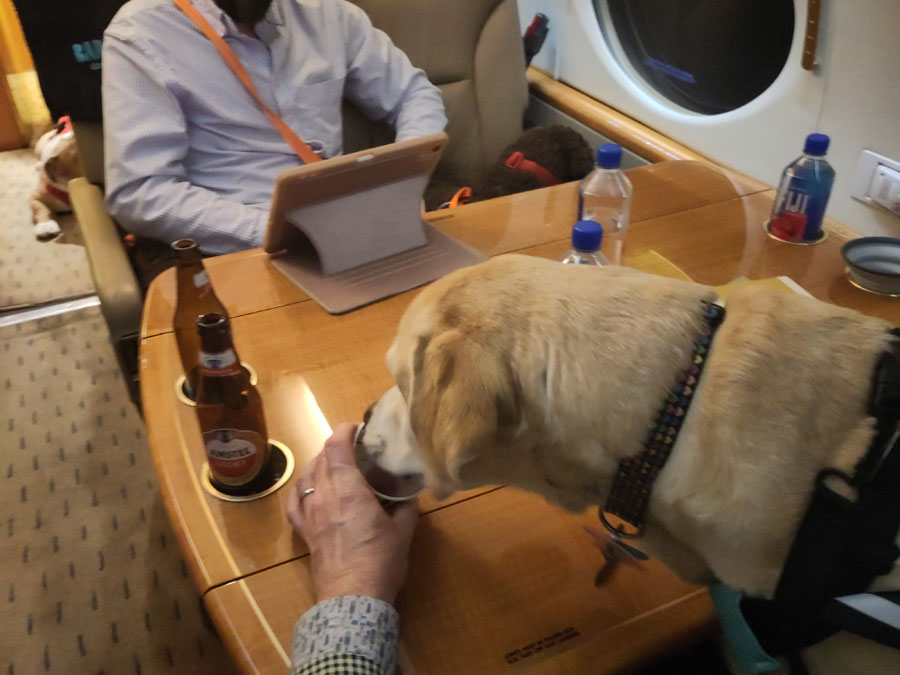 But, after some chill out drugs she was fine the rest of the trip. We sat across from a Portuguese water dog moving to the Netherlands and an English bulldog who had to hang out with the stewardesses.