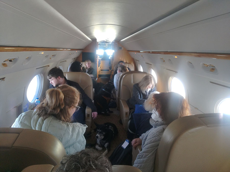 There were some problems with rain and a short runway so we had to leave early and take a detour to Bangor, Maine where there is a longer runway that could handle the heavier rain. Unfortunately, this involved an additional landing. Which Athena was not a fan of.